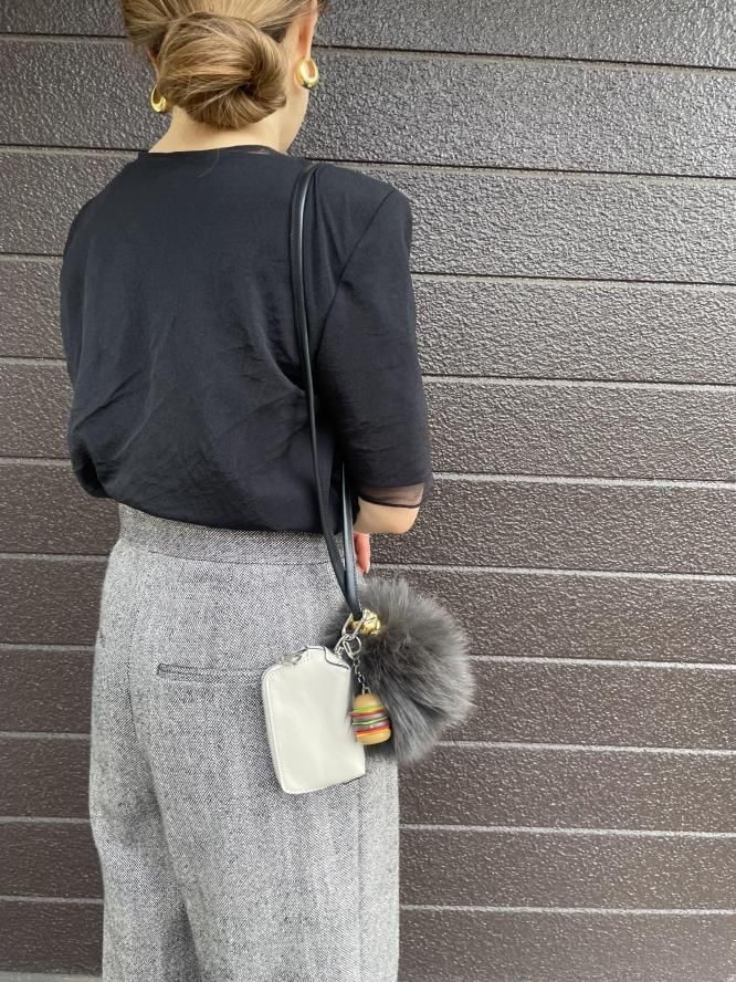 肩掛けできる長さのレザーコードでアレンジ自在です。